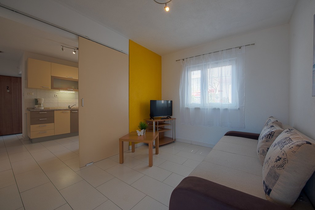 Das Appartement 2 im EG ist ca. 45m2 groß, verfügt über ein separates Schlafzimmer, Wohnbereich mit zusätzlicher Schlafmöglichkeit, Küche, Badezimmer, Terrasse mit Meerblick.